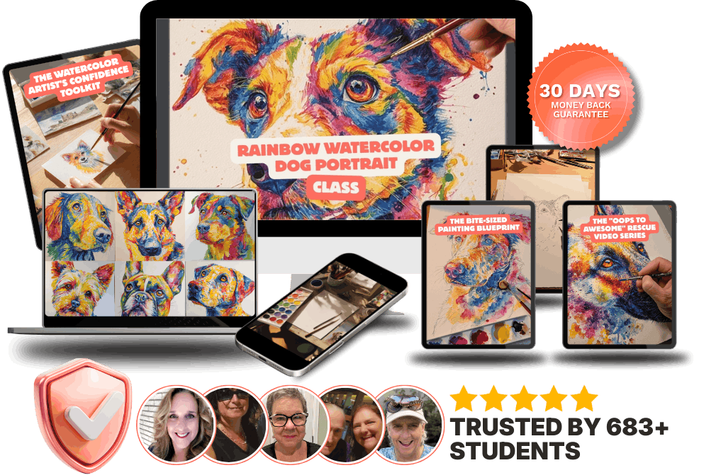 Lifetime Access to The Rainbow Watercolor Dog Portrait Class